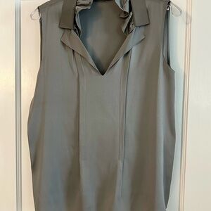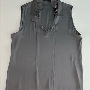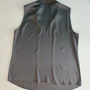 Chic sleeveless silk blouse with a stylish collar. Perfect for versatile wear. Like new condition. Looks great with a black blazer for work and stand alone after work.