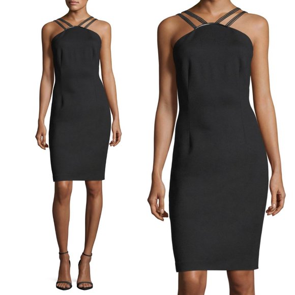 Elie Tahari Cisco Sheath Mini Dress Strappy Halter Neckline Sz 2 Black