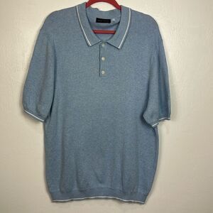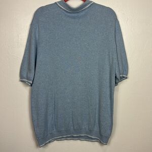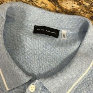 Elie Tahari Contrast Trim Short Sleeve Polo Sweater In Blue Lake Size XL