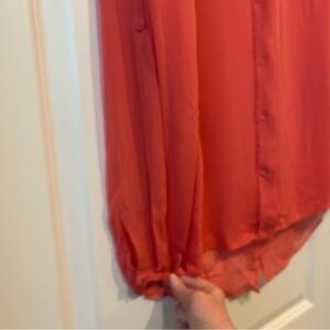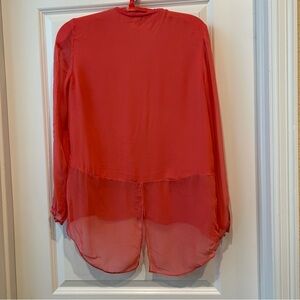 Elie Tahari Coral 100% Silk Button Up Top Sz M Asymmetrical Hem Classic