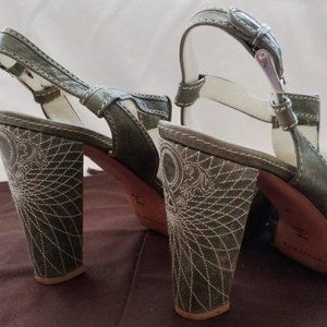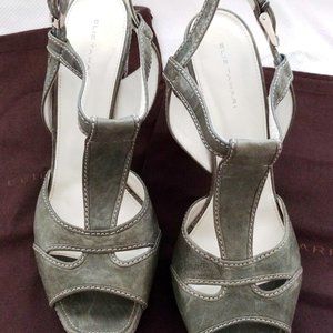 Elie Tahari Distressed Green Leather Platform Chunky Heeled Sandals Size 10 EUC