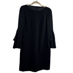 Elie Tahari Dori Dress Boat Neck Flared Sleeve Crepe Black Size 4 NWT $398