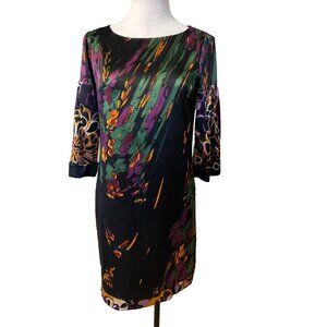 Elie Tahari Dress Black Floral XS Extra Small 0 2 4 3/4 Long Sleeve Stretch Silk