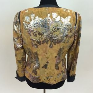 Elie Tahari Designer Jacket Embroidered with Golden Thread, Pintuck Shoulder Detailing, Hand Stitched Detailing Throughout entire Jacket