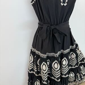 Elie Tahari Embroidered Midi Dress Sleeveless Fit and Flared Black US 12