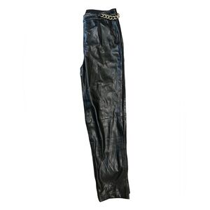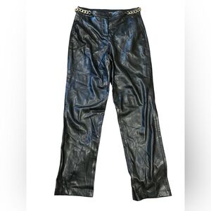 Elie Tahari Exclusive vegan leather black pant with side gold chains size 4