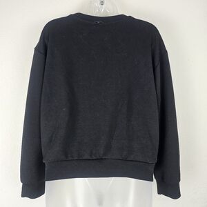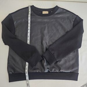 Elie Tahari Faux Leather Sweatshirt Black Size M Perforated Front Panel Pullover