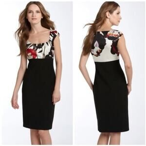 Elie Tahari Floral Bodycon Dress Silk Blend Purple & Black Knee-length Sz 4