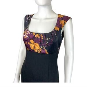 Elie Tahari Silk Blend Bodycon Black Purple& Yellow Floral Print Knee-length Dress