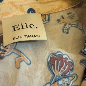 Elie Tahari Floral Wrap Blouse - Cream and Blue