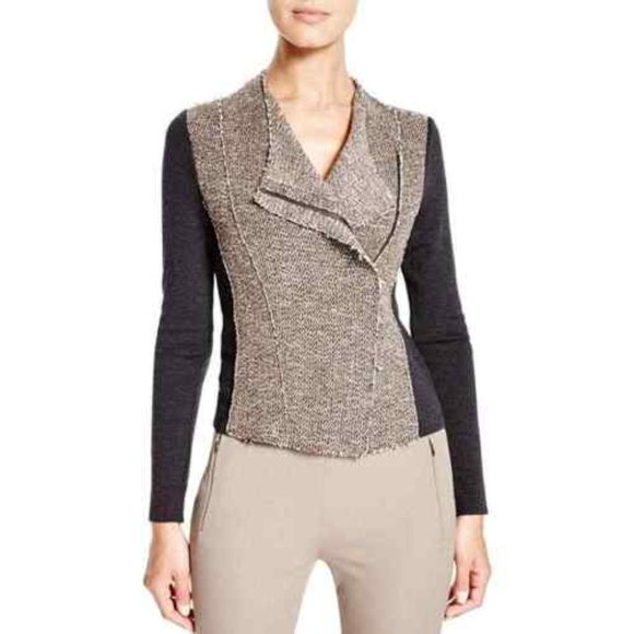 Elie Tahari Gabby Wool Blend Moto Jacket Blazer Asymmetrical Zip Tweed Raw Edge
