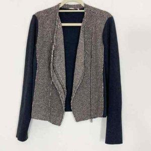 Elie Tahari Women's Gabby Wool-Blend Moto Jacker Blazer Asymmetrical Zip Tweed Raw Edge Size XL