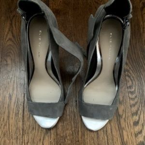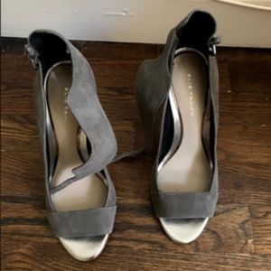 Elie Tahari Gray Suede Open Toe Pumps