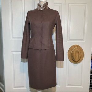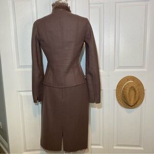 Elie Tahari Grey Pink Virginwool Blazer with Skirt Reversible Snap buttons 8
