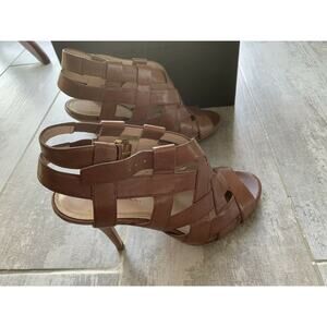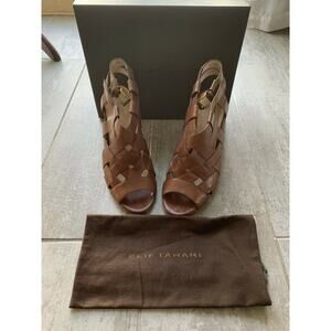 Elie Tahari High Heel Peep Toe Sandals Leather Tan Brown Strappy Designer 39 9