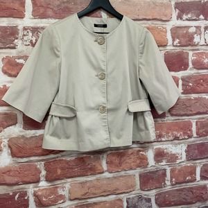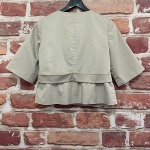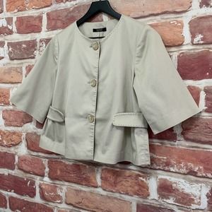 Elie Tahari Jacket Womens XS Tan Accent Stitch Short Sleeve Button Front Blazer