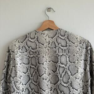 - Features: Python-embossed leather, long sleeves, Lace-up detailing accents paneled bodice and sleeves, zip closure, Lined, dry clean by leather specialist