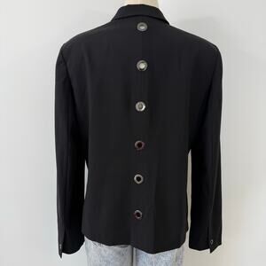 Elie Tahari Kati Grommet Blazer One-Button Black Stretch Wool Jacket US 16