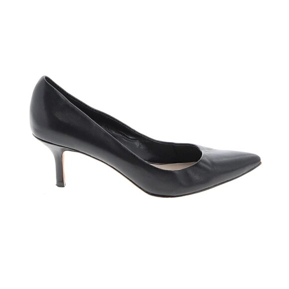 Black vegan leather kitten heels by Elie Tahari. Size 39.5 = US 9.5
