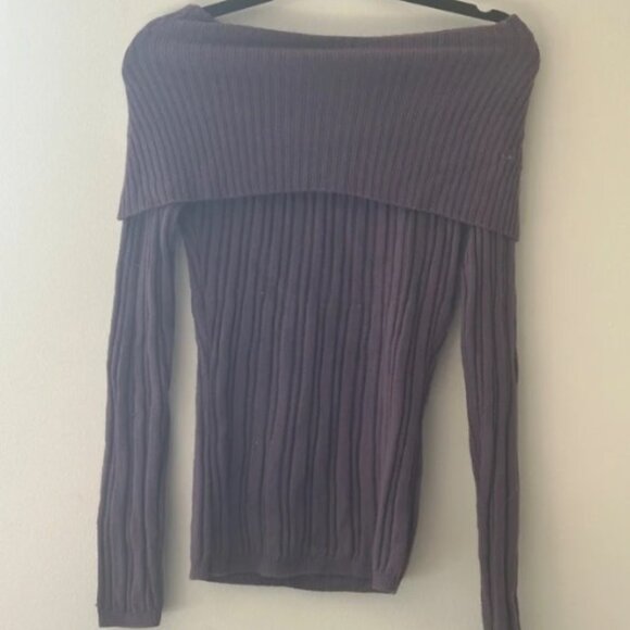 Elie Tahari sweater in a gorgeous deep purple. Can be worn off the shoulder or as a cowl neck.