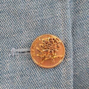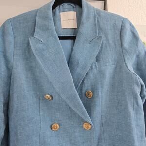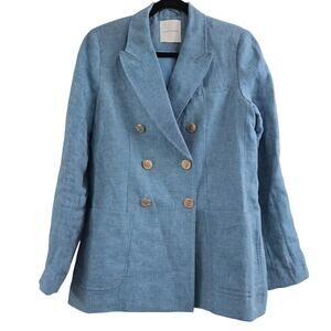Elie Tahari Linen Blazer Blue Size 10 Double Breasted Gold Button Jacket