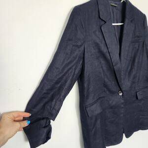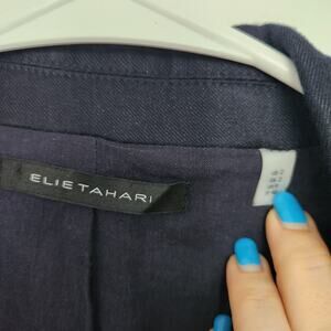 Elie Tahari Linen Blend Classic Blazer 2 Navy Preppy Office Business School Chic