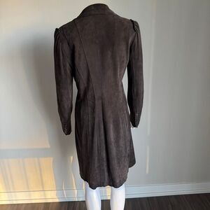 Elie Tahari Long Brown Suede Fitted Jacket With Ornate Buttons Size S