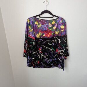 Elie Tahari Luxury Silk Floral + Abstract Printed Blouse, XL