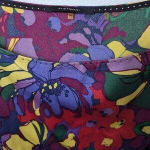 Elie Tahari Luxury Silk Floral + Abstract Printed Blouse. Cuffed sleeves. Soft and silky. Size XL, measuring 23x27. RN 50814. In excellent, like new, condition.