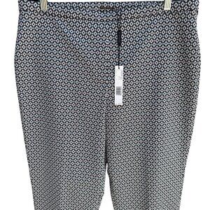 Elie Tahari Marcia Stretch Navy White Geometric Print Cuffed Dress Pants New 16