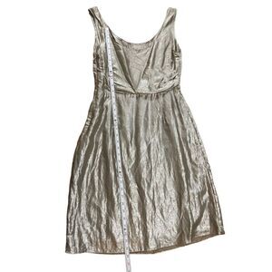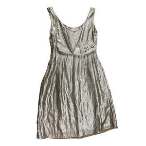 Elie Tahari Metallic Pewter Midi Dress Silk Blend Sleeveless Size 12 Modern Chic