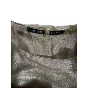 Turn heads in this stunning Elie Tahari metallic pewter dress, crafted from a luxurious silk-cotton blend that gives it a soft yet structured silhouette. This sleeveless midi-length dress features a flattering fitted bodice, waist seam detailing, and a subtle sheen that catches the light beautifully; perfect for cocktail parties, weddings, or holiday events.