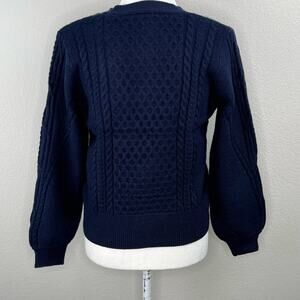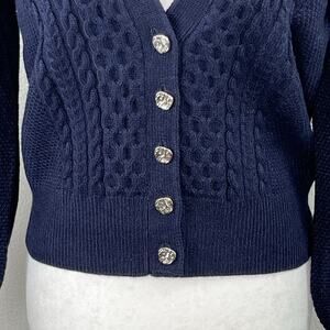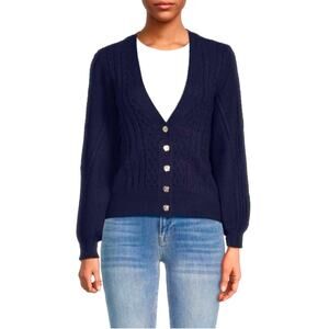 Elie Tahari Navy Blue Cable Knit V-Neck Cardigan Sweater NWT Small