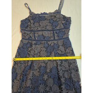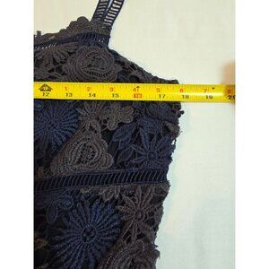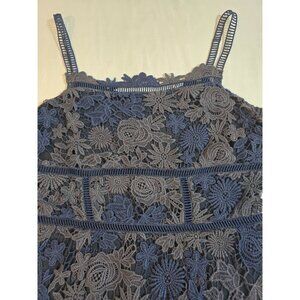 Elie Tahari Navy Blue Lace Floral Sleeveless Dress With Zipper Back US size 8