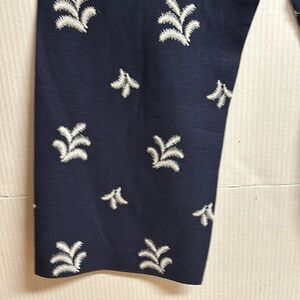 Elie Tahari Navy Blue/W Cream Colored Embroidered Palm Trees Wide Leg Size 10