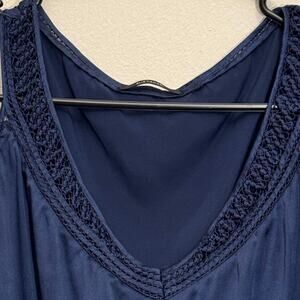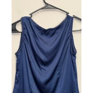 Elie Tahari Navy Bue Silk Blend Embroidered Sleeveless Blouse Size XS Career