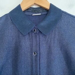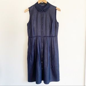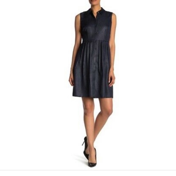 A sleeveless shirt dress features a luxe, shimmering finish accented by a honeycomb collar, shiny front button closure, hidden pockets, and a pleated skirt. Fit: this style fits true to size. - Point collar - Sleeveless - Front snap button placket - Side slash pockets - Glitter finish - Solid woven construction - Honeycomb mesh collar - Pleated skirt - Unlined - Approx. 36.5" length (size 2) - Imported