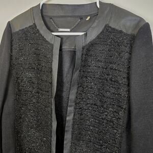 Elie Tahari Open Front Wool Lamb Leather Jacket MED Silver Shimmer Moto Luxury