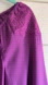 Chic purple blouse with delicate embroidery. Features a stylish neckline and tie detail. Measures 21 inches pit to pit; 27 inches in length.