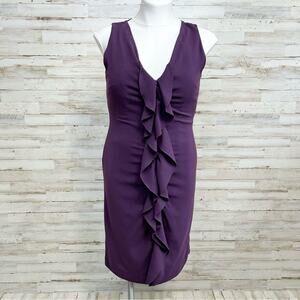 Elie Tahari Ruffle Wool Blend Sheath Dress Size 8 Purple Sleeveless Zip Front