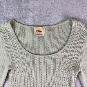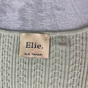 Elie Tahari Sage Green Sweater Women's XS Cableknit Stretchy Balloon Sleeve