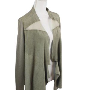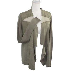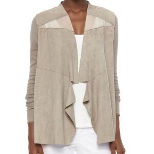 Elie Tahari Sarena Tan Goat Suede & Knit Two Tone Waterfall Cardigan, Si…