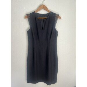 Elie Tahari Sheath Sleek Dress Wool Blend Sheer Ruffle Cap Sleeves Corpcore SZ 4