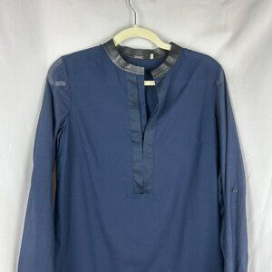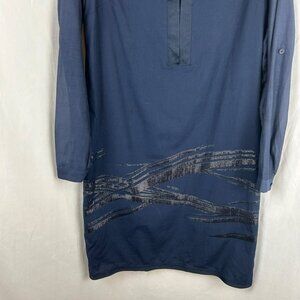 Elie Tahari Shift Dress Women 6 Navy Blue Cotton Blend Abstract Detail Leather