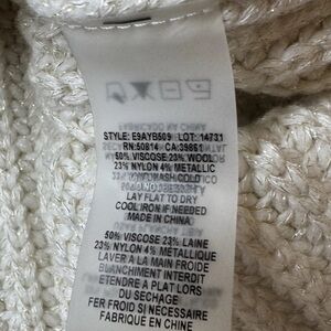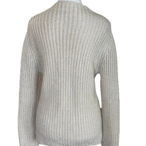 Elie Tahari Shimmer Cream Ribbed Mock Neck Sweater *Large Chunky Knit Wool Blend