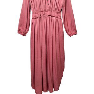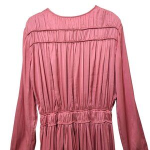 Elie Tahari Shirred Maxi Dress Pink Satin Sorbet Sz Large