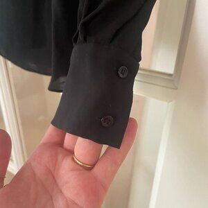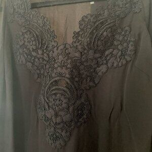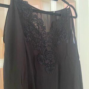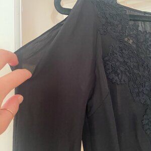 Elie Tahari Silk Black Long Sleeve Off The Shoulder Blouse w/ Lace Detail, XS