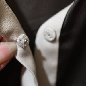 Elie Tahari Silk Green & Coral Popover Snap Button Color Block Shirt Top Blouse LG