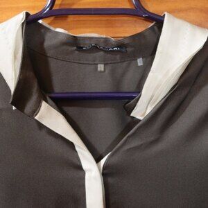 Elie Tahari Silk Green & Coral Popover Snap Button Color Block Shirt Top Blouse