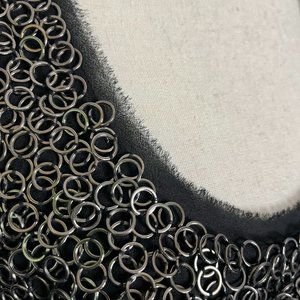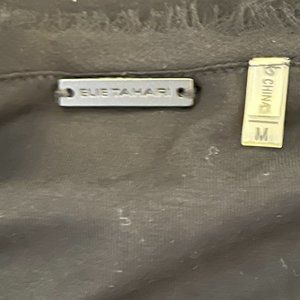 Elie Tahari silk dress with dark silver metal rings all over it. Has unfinished edges. Size medium. Gently worn with no visible flaws.